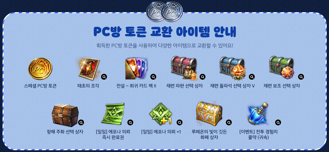 스페셜PC방 토큰은 더욱 특별한 아이템으로 교환할수 있음