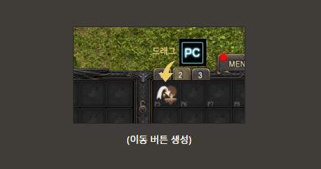 PC방 버프 아이콘을 단축창에 드래그하여 이동 버턴으로 사용할수 있습니다.