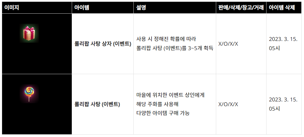 -보상으로 획득한 롤리팝 사탕상자를 개봉하면 롤리팝 사탕을 정해진 확률에 따라 3-5개 획득 합니다.