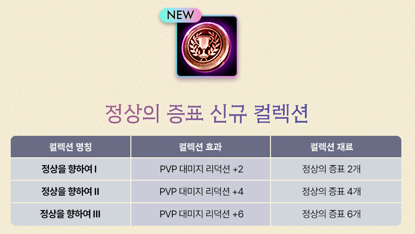 정상의 증표를 제작할수 있는 신규 제작 리스트가 추가 되었습니다