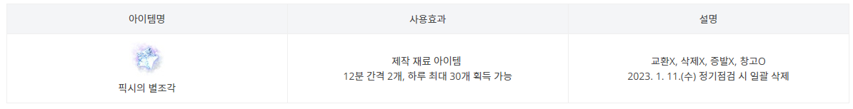 -픽시의 별조각을 모아 하늘정원의 수상한 제작자 코히를 통해 신규 아이템 제작이 가능 합니다