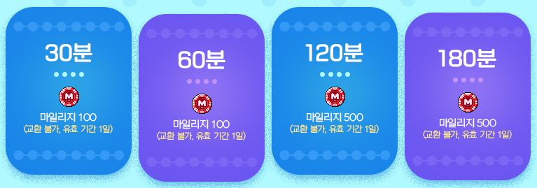 -30분 60분 120분 180분마다 마일리지 획득 가능