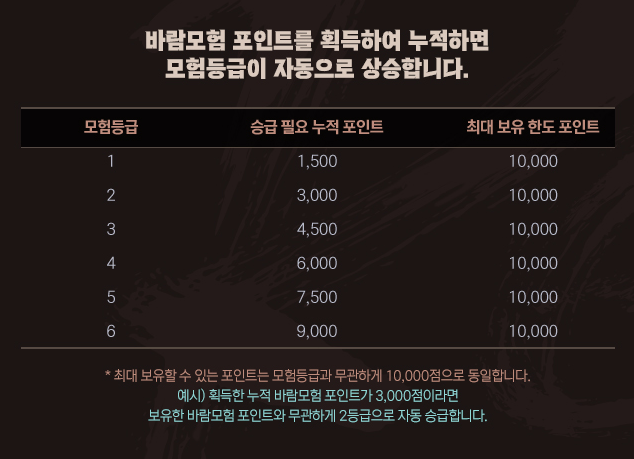 바람모험 포인트 누적 획득량에 따라 자동으로 모험등급 업!