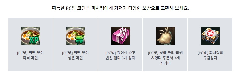 PC방 코인-접속 시간에 따라 PC방 코인 획득 가능 코인을 모아서 다양한 아이템과 교환 하세요