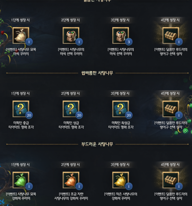 사탕나무별 획득 가능 보상! 이미지안내