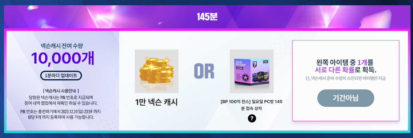 매주 넥슨 캐쉬 1만 득템의 기회!